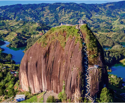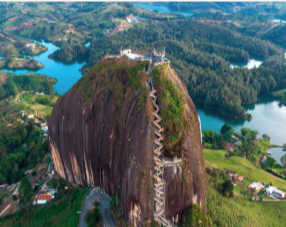 Climb 740 steps to reach the top of Peñol rock to admire the green islands within the lake and visit the colorful town and natural reservoir of Guatapé. Enjoy a typical Colombian lunch on the shores before taking a boat trip into the lake.